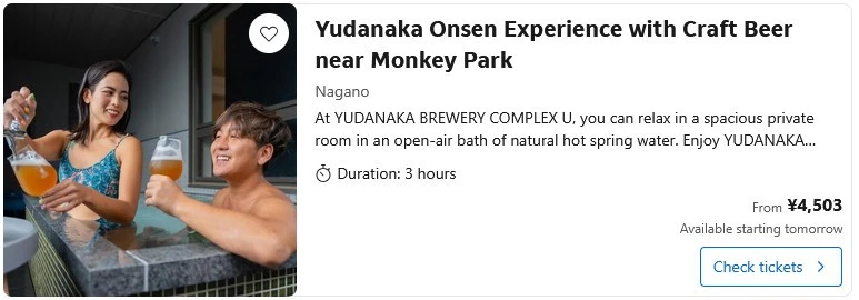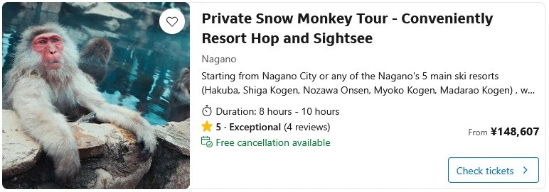 - Most tours run out of Nagano City, but there are others available if you’re in ski areas like Myoko Kogen, Nozawa Onsen, Shiga Kogen, and Hakuba, etc. There are tour operators that do snow monkey day-trips or private transfers, as per below, and these can be combined with other local attractions such as Zenkoji Temple and Togakushi.