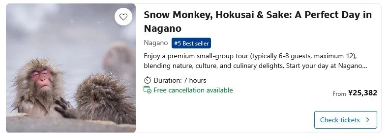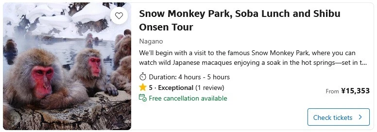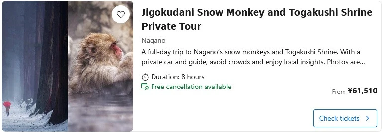 Japan Snow Monkeys Tours Options